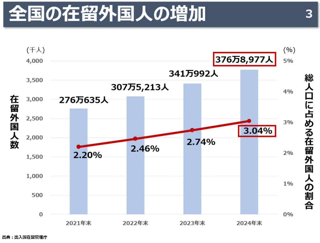まで上昇しており、日本社会における外国人の存在感は年々高まっています。